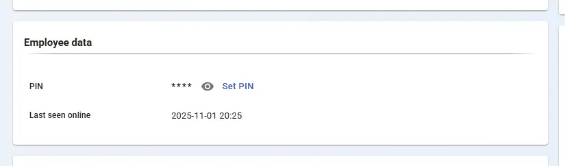 You can view your employees’ PINs and the last time they were active online. The “last seen” time reflects not only their most recent login but is continuously updated with each productive interaction they have with the system, such as when they pick up an order.
