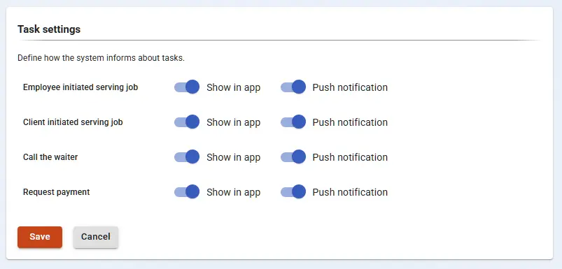 As an administrator, you can view and configure your employees’ task settings — including when and how they receive notifications from the system regarding their assigned tasks.